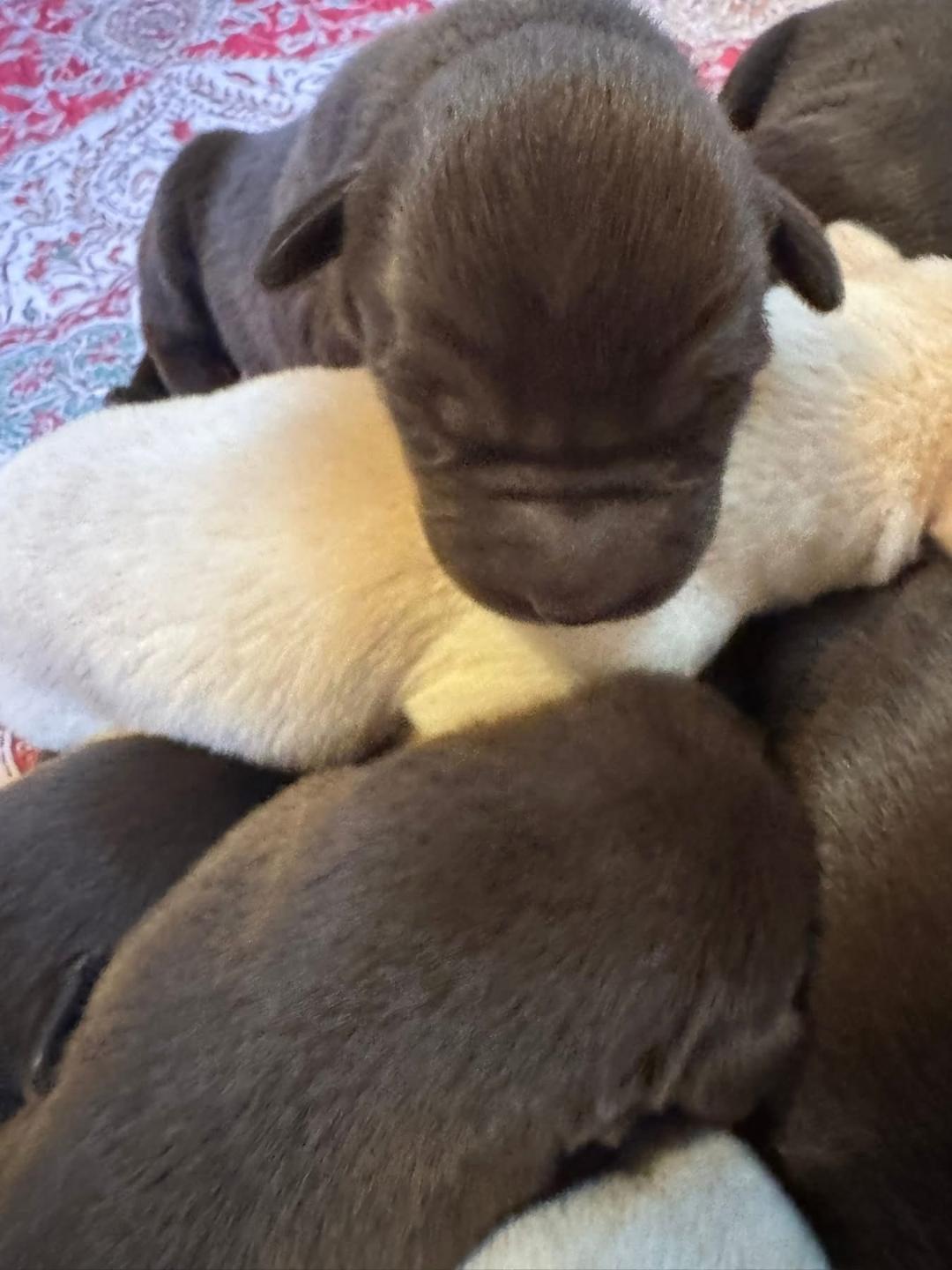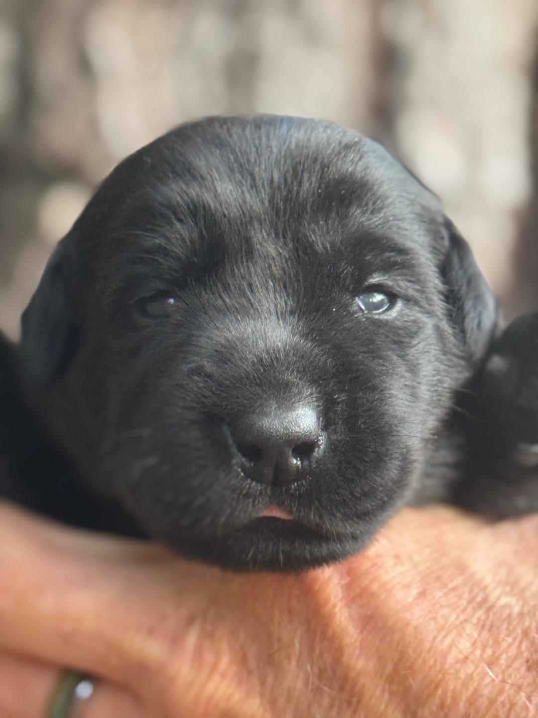 The young black pups are River/Cash PUPS arrived around the 11th of October. This is another very strong breeding. River and Cash present in their four generation pedigree 6 National Field champions. Cash’s Sire is a Grand Hunter Retriever champion and his Grandfather is a National Field Champion. Smart yes these pups are the total package. Smart, loving and ready to love the world.