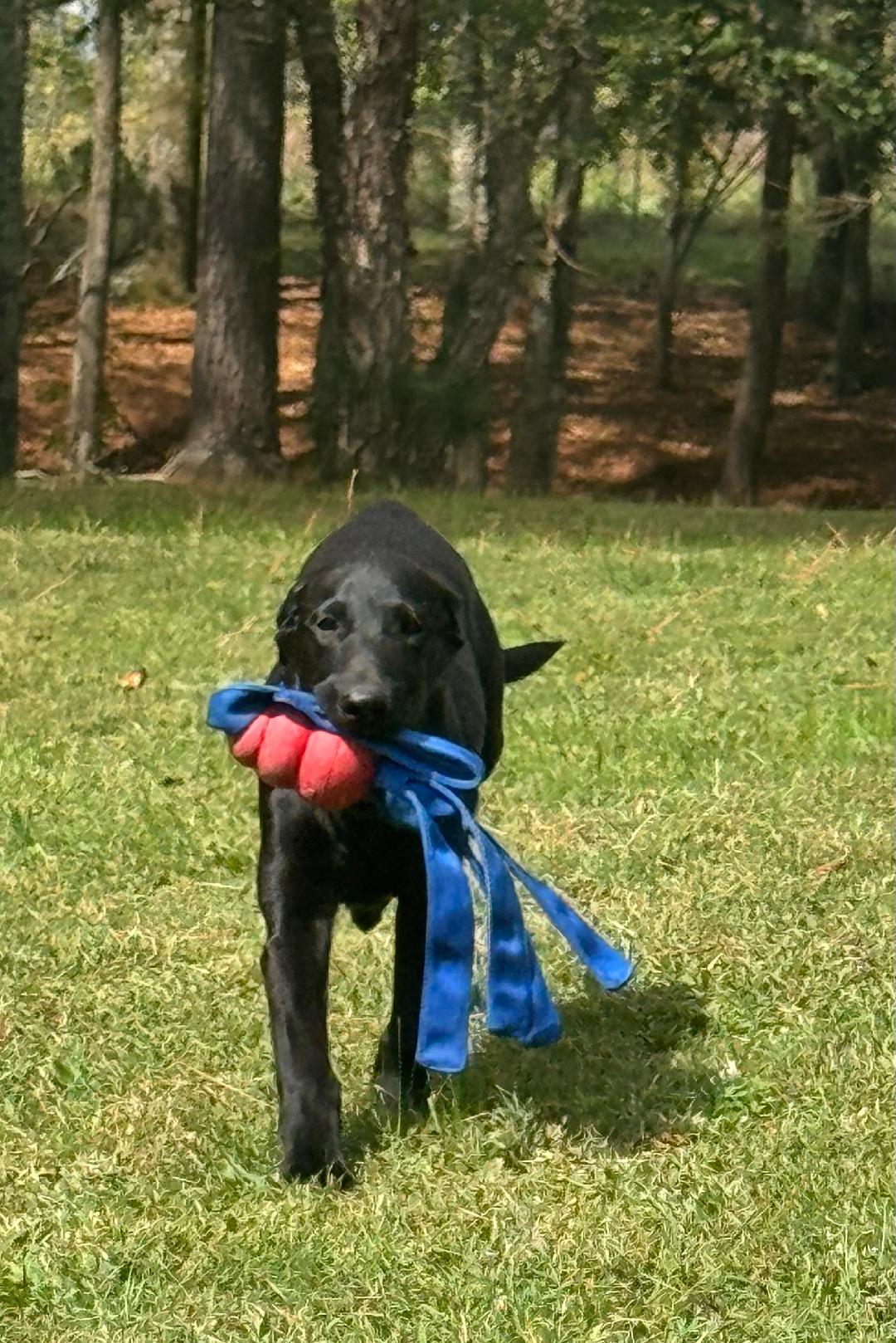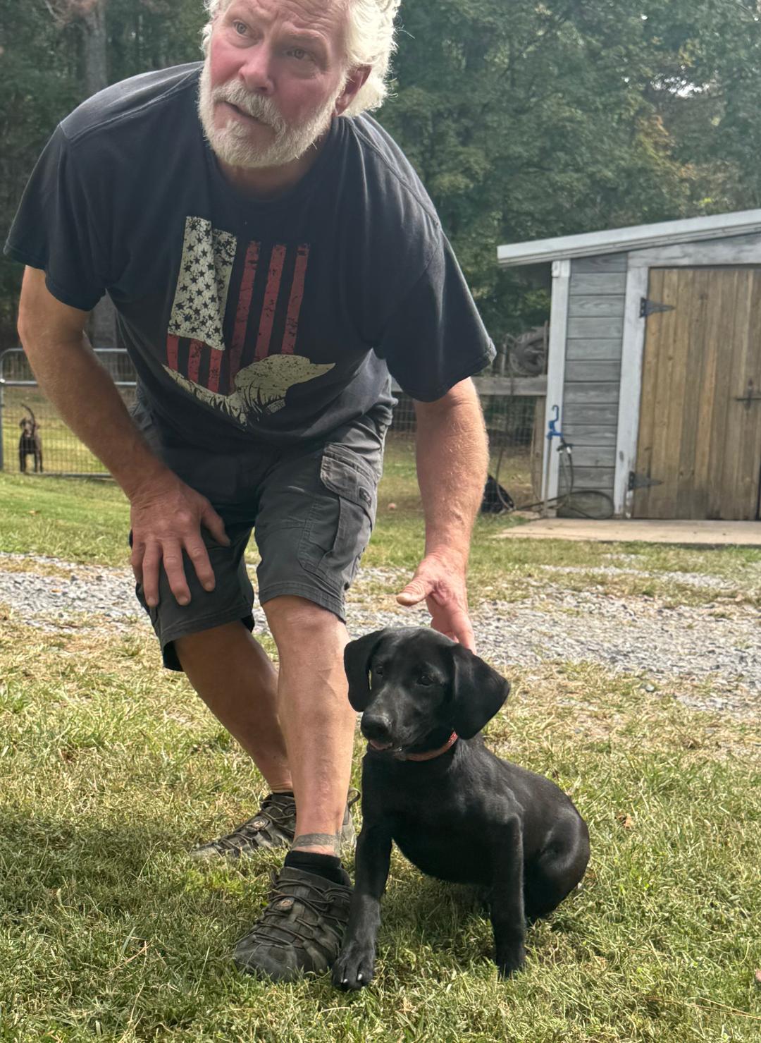Sullivan the older black PUP is in our PUPPY TRAINING ADVANCED PROGRAM. he is a Nikki /Diesel pup. Nikki and Diesel present in their 4 generation pedigree 13 National Field champions and 44 Field champions. He is so very smart and loves all the attention he is getting while learning all the basics…..intro to retrieving, leash, crate and socializing which is, of course, his favorite. His personality is over the top. He definitely stole the show, he is very loving, smart and so very willing to please!!!!!!!!!